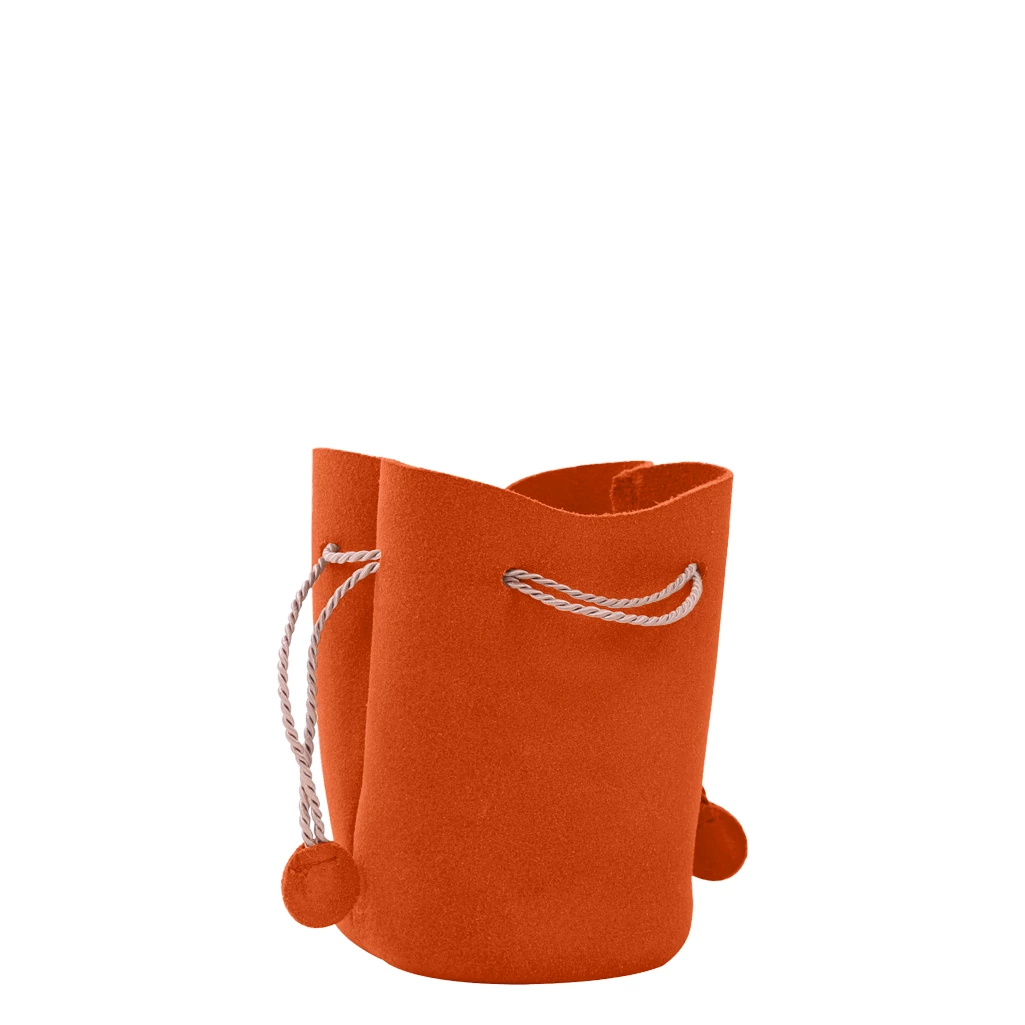 This is the large drawstring pouch in leather, perfect to fit in your watch, necklace and other jewellery. This large bucket purse is made in suede calf leather and is ideal when you are travelling as it can contain your valuables that you can then slip in your travel bag. The Lucrin leather bucket pouch or aumoniere is a perfect gift idea too as you can choose a beautiful engraving option. There is a beautiful choice of colours for this small drawstring bag but its cord is of beige colour only.