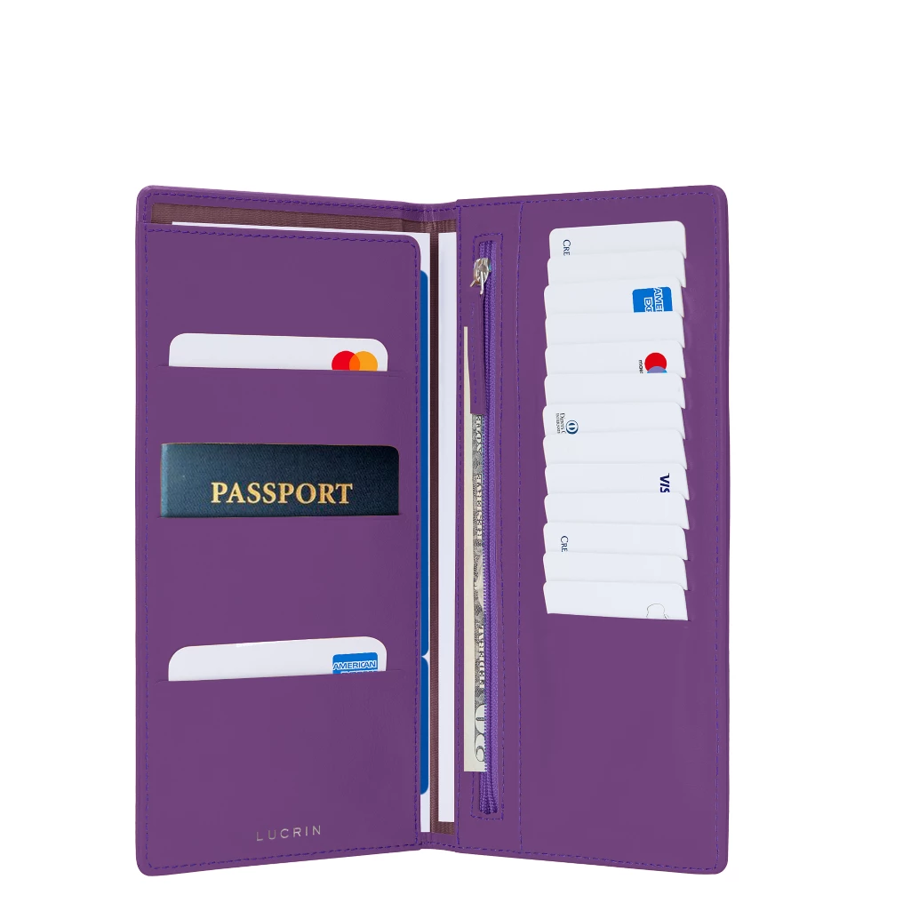 Discover the new trendy and ultra-practical travel accessory! Ideal for occasional and regular travellers, the Lucrin travel pouch allows you to carry all your travel essentials. The wallet can accommodate all your essentials, such as your credit cards (13 pockets), loyalty cards (3 pockets on the left), your passport and boarding pass as well as banknotes in the zipped pocket.