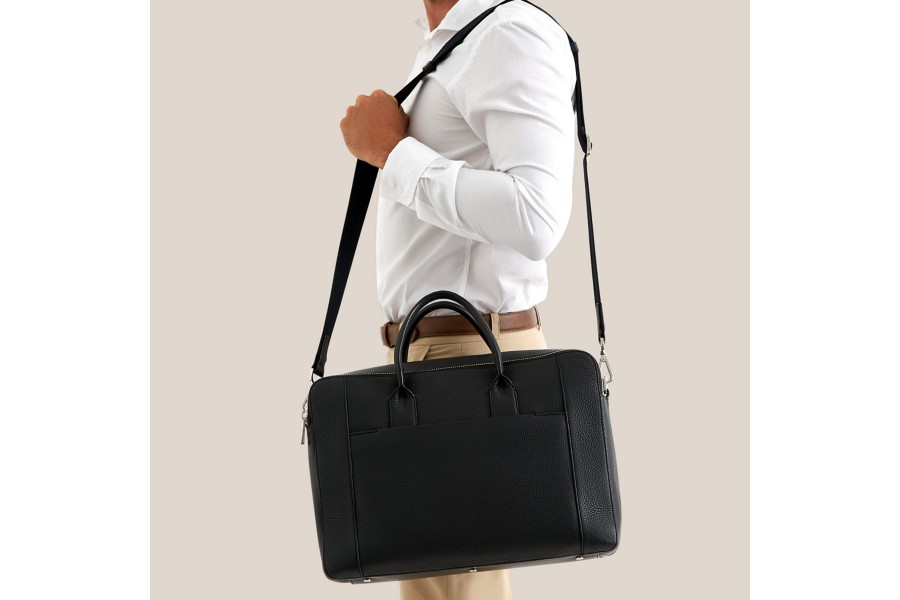 Lucrin's Designer Collection presents this unique granulated calf leather travel bag. You can place your shirts and a wash bag on one side and on the other, you can put some important documents and even your laptop. Delivered with a luggage tag. The Shirt case (LX1015) of this collection can fit in this travel briefcase and is sold without the case.