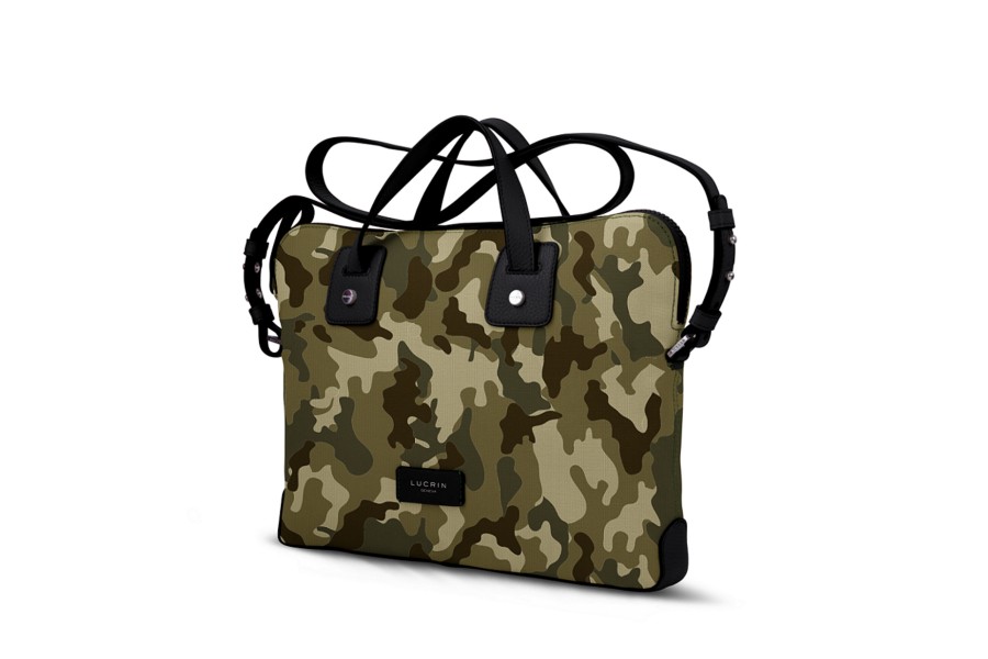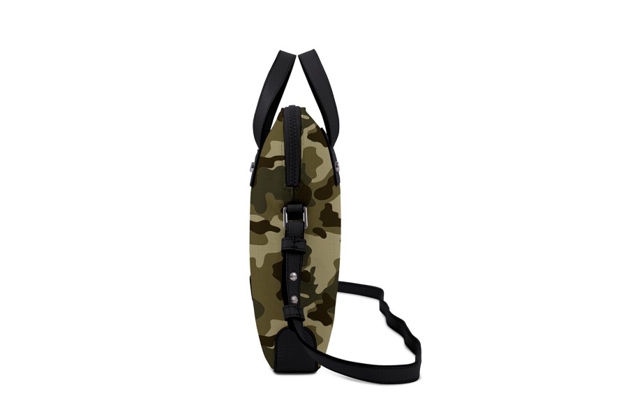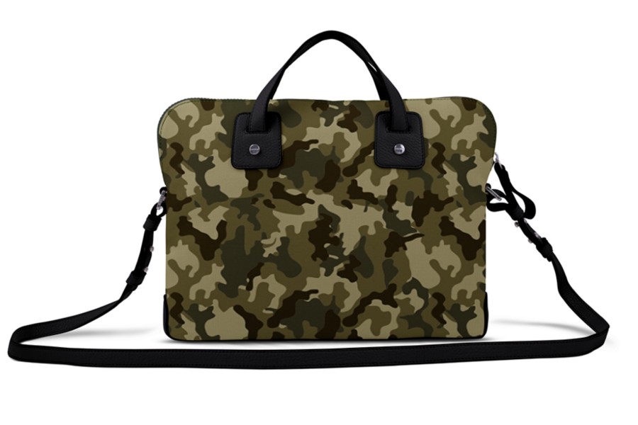 Canvas Satchel Briefcase (13 inches) - Dark Green-Black - Camouflage