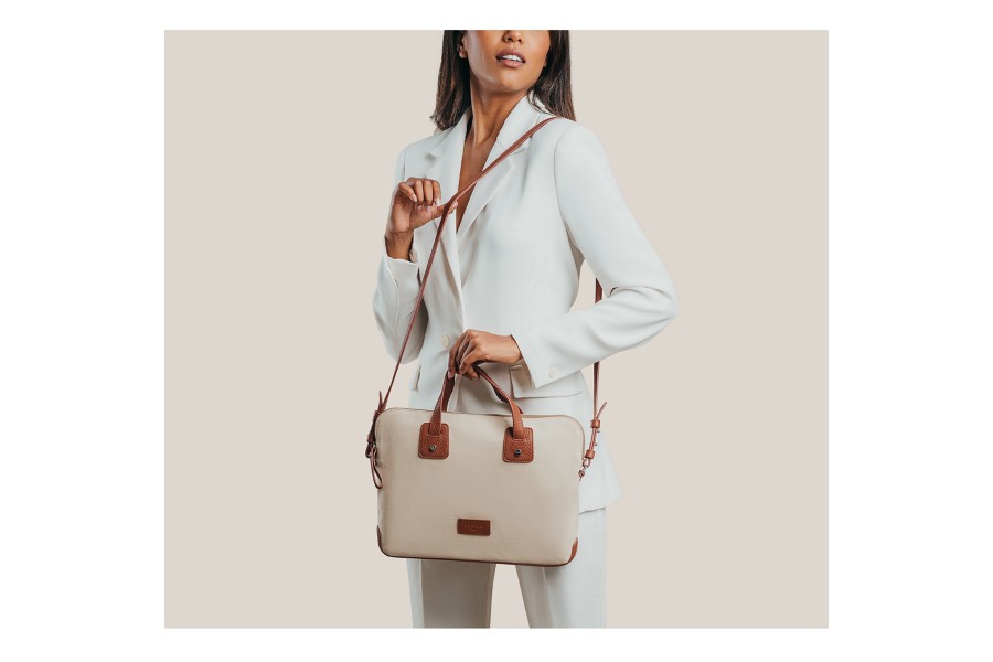 For a semi-pro trendy look, this canvas satchel briefcase is the ideal choice. Coming from the Océan bag collection by LUCRIN Geneva, this 13-inch laptop bag has a large zip that encloses a great organisation space for your: 13-in laptop, A4-format documents, smartphone and other essentials. Leather handles allow you to carry the canvas bag in hand whilst an adjustable shoulder strap transforms the briefcase into a trendy messenger bag, whichever suits you best.
