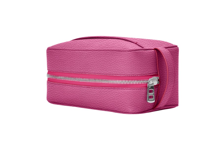 Designer Toiletry Bag (25 x 14.5 x 11.5 cm) - Fuchsia - Granulated Leather
