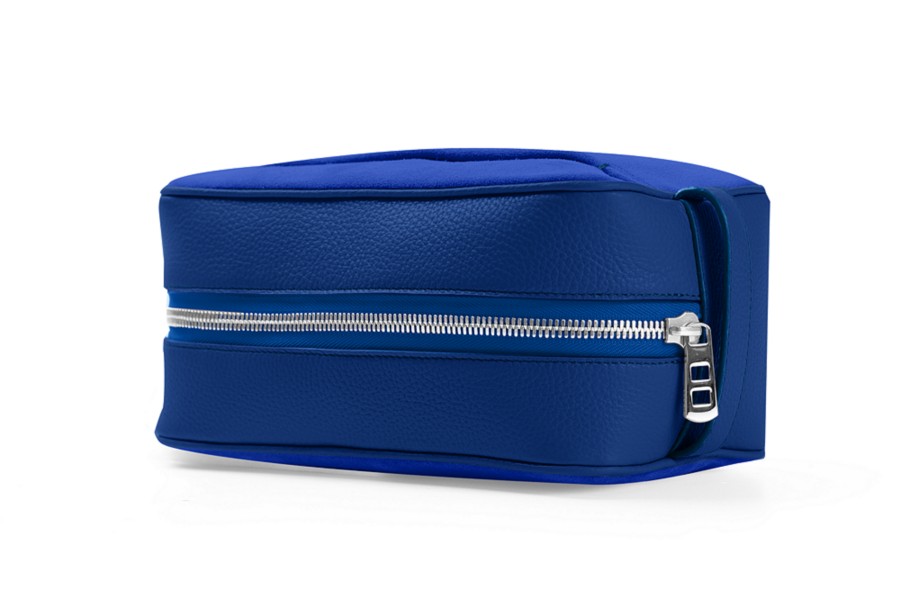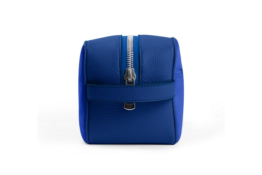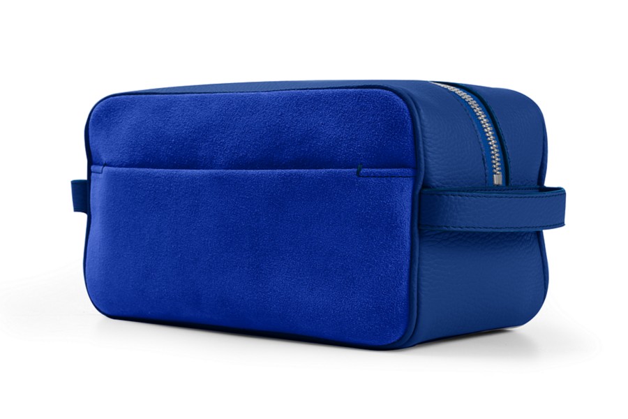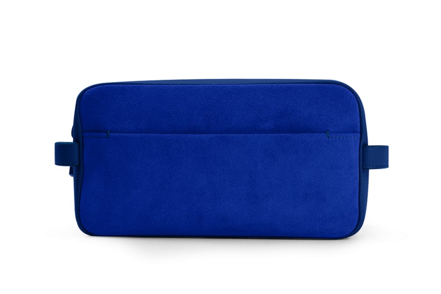 Designer Toiletry Bag (25 x 14.5 x 11.5 cm) - Royal Blue - Suede Calf