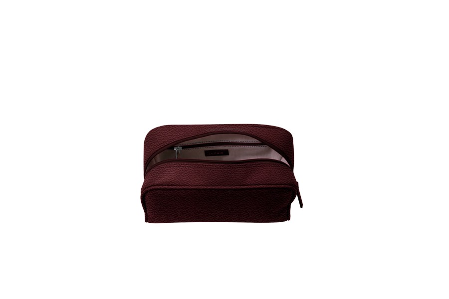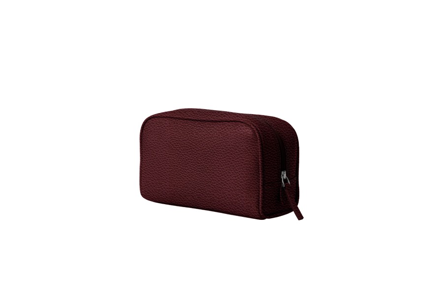 Small Wash Bag (18.5 x 11.5 x 7.5 cm) - Burgundy - Granulated Leather