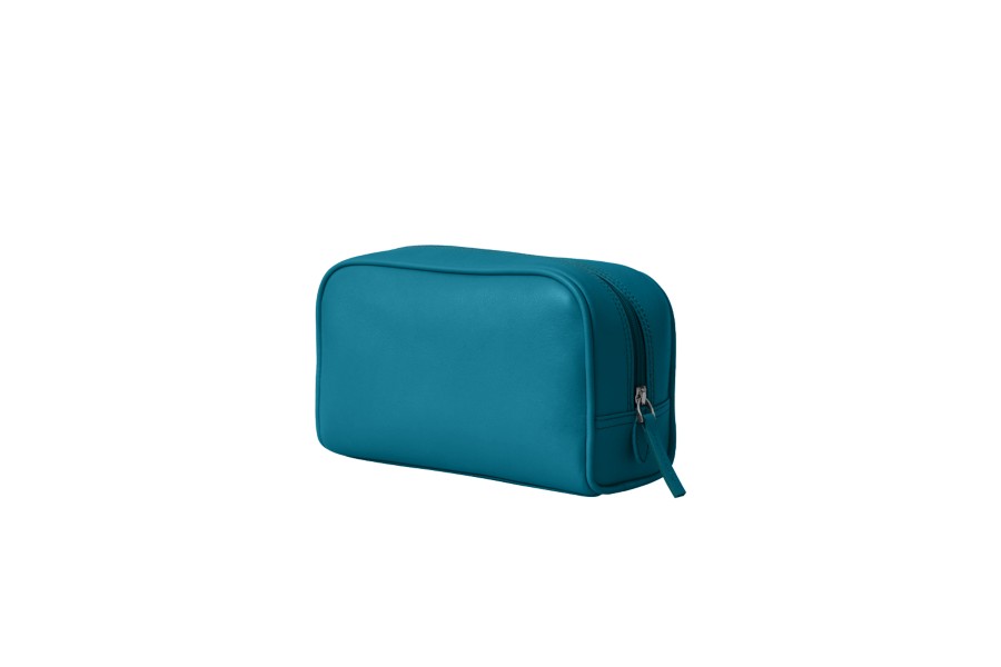 Small Wash Bag (18.5 x 11.5 x 7.5 cm) - Turquoise - Smooth Leather
