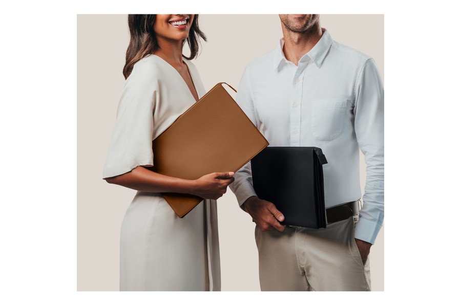 Lucrin's leather A4 document case with 3 compartments can be customized with several shades of leather and top quality engraving options.