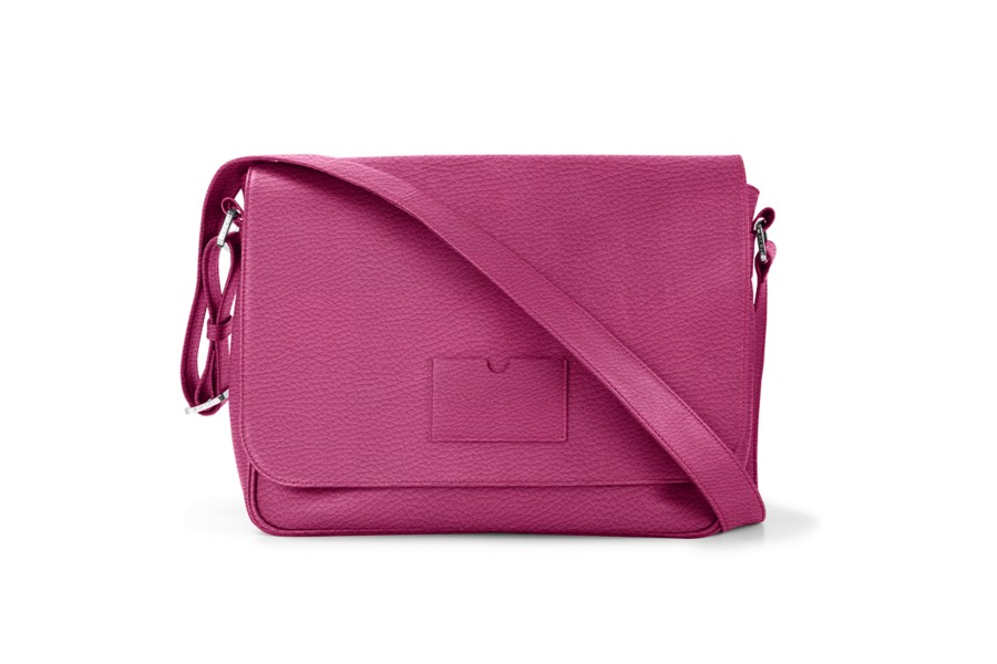 Great to carry everyday, this messenger bag comes with a large magnetised flap closure, rounded shape and soft conception. Two magnets help the flap of the mailbag snap shut and this is very practical when you are on the move. The cotton lining plus the zipped flat pocket inside the sling bag ensure that you can keep in your daily essentials, such as your phone, wallet and keys. The relatively large volume of this shoulder bag allows you to slip in your doc holder, notepad, copybook or a laptop of up to 17 inch. You can customise this leather crossbody bag with your initials for instance.