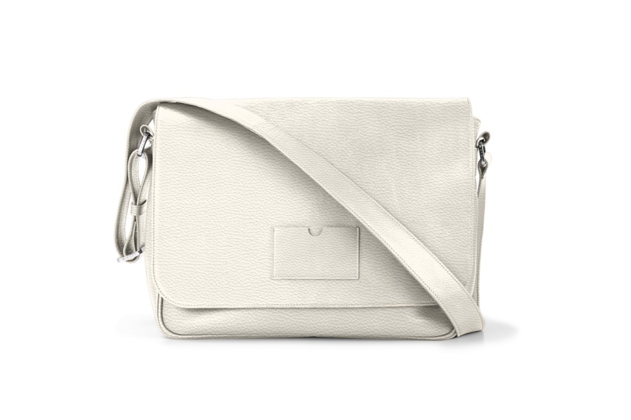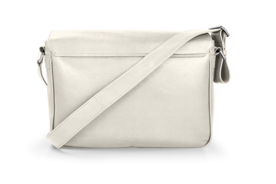 Great to carry everyday, this messenger bag comes with a large magnetised flap closure, rounded shape and soft conception. Two magnets help the flap of the mailbag snap shut and this is very practical when you are on the move. The cotton lining plus the zipped flat pocket inside the sling bag ensure that you can keep in your daily essentials, such as your phone, wallet and keys. The relatively large volume of this shoulder bag allows you to slip in your doc holder, notepad, copybook or a laptop of up to 17 inch. You can customise this leather crossbody bag with your initials for instance.