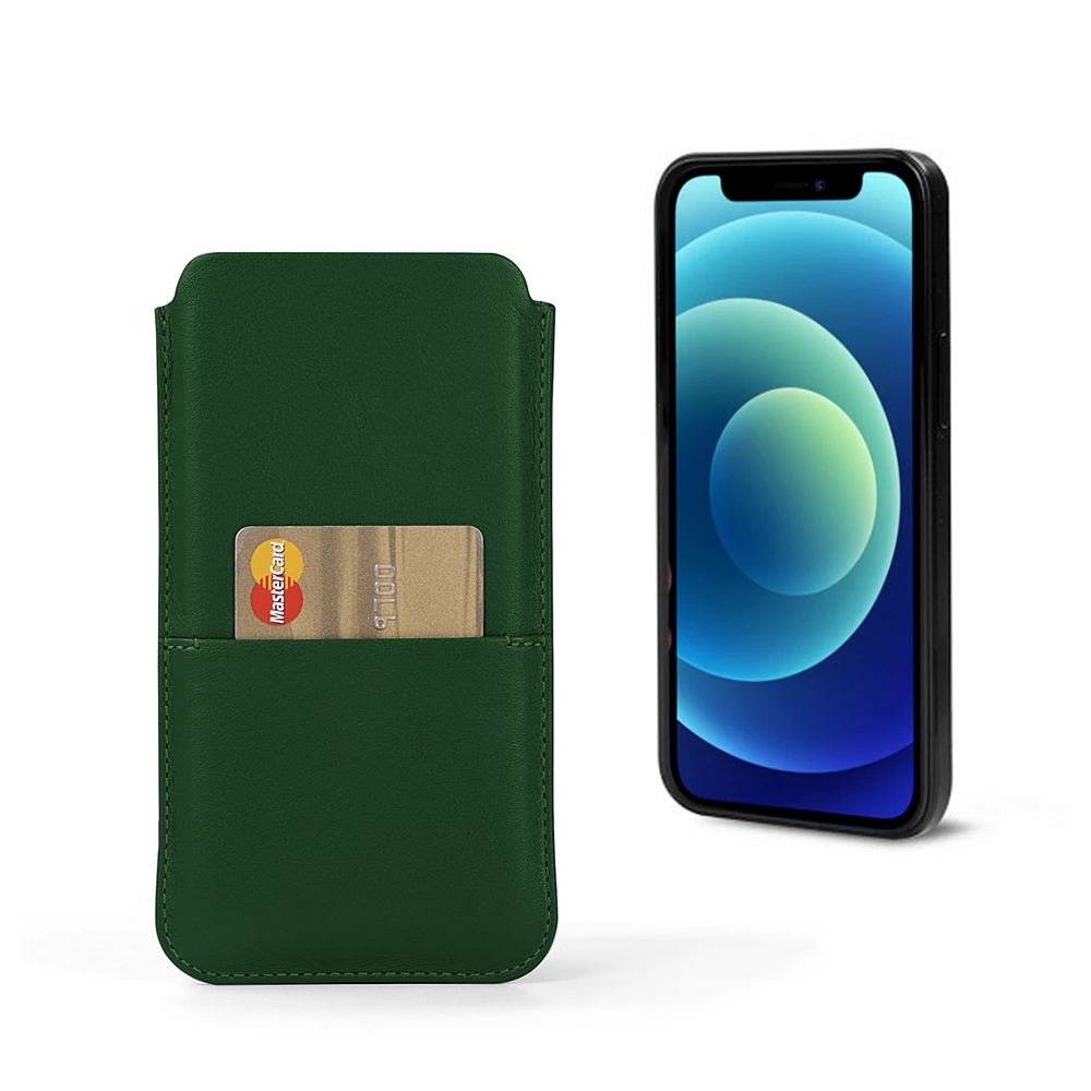 iPhone 12 mini Pouch with Pocket Dark Green  - Smooth Leather