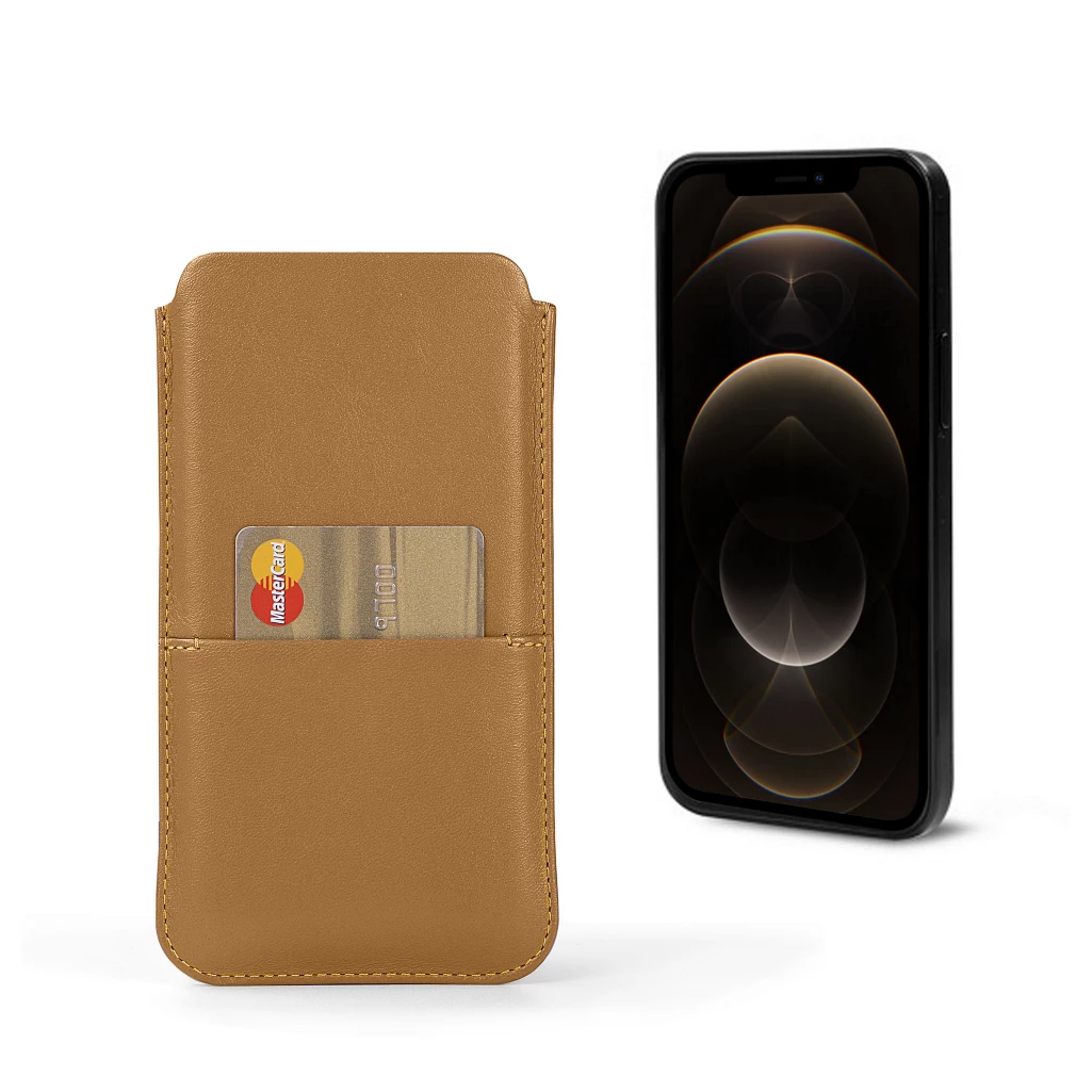 iPhone 12 Pro Pouch with Pocket Natural  - Smooth Leather