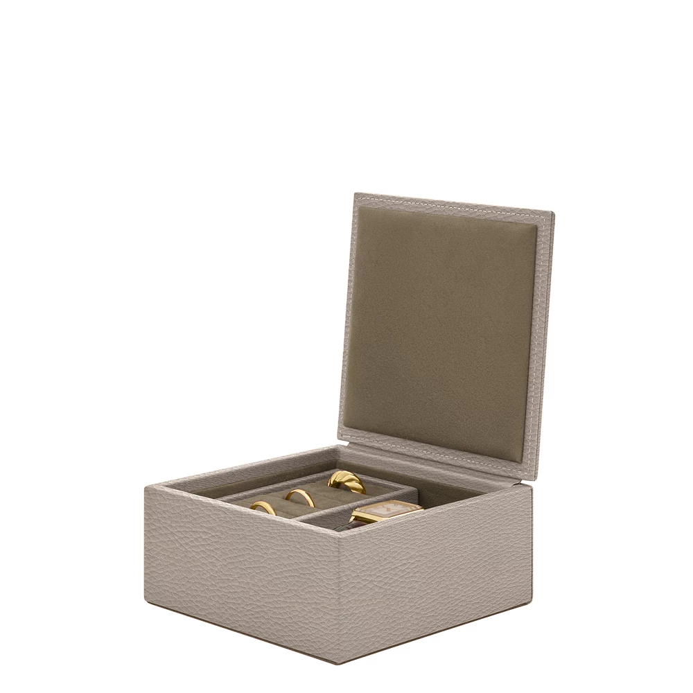 Jewellery Box with Tray Light Taupe  - Pebbled Leather
