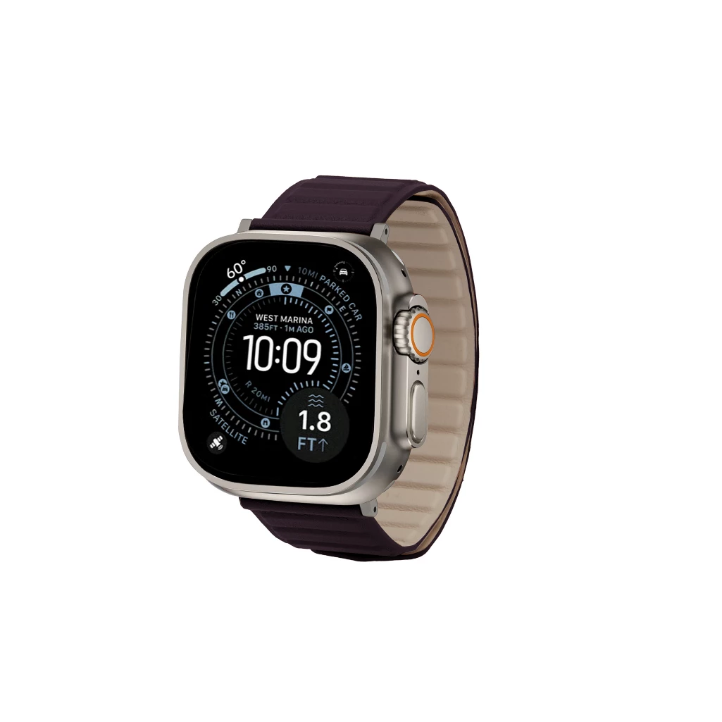 Magnetic Band - Apple Watch Ultra 3 - Silver - Dark Brown - Calf Leather
