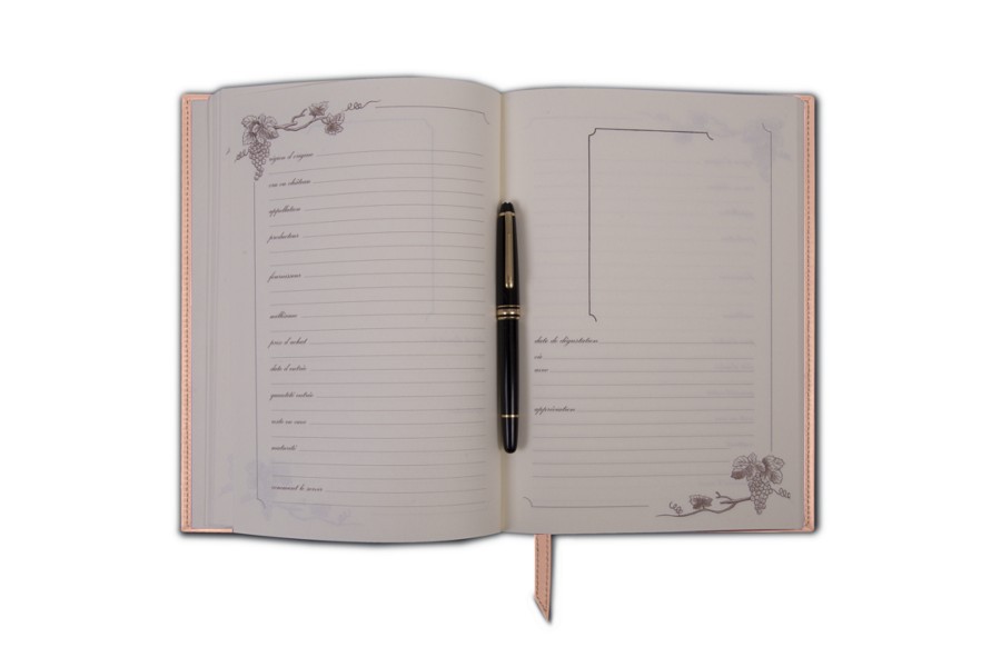 Cellar book for 77 vintage years, available in French only. This book enables you to organise your cellar efficiently, noting down all the information necessary for its good management. To the right, there are sections for the region of origin, grape variety or château, appellation, producer, supplier, year, purchase price, date of entry, quantity of entry, remainder in cellar, maturity and notes on serving. On the left, there is a space for sticking the bottle label, the date of tasting, where and with what this was done, and comments on the wine. The book has a leather strip that serves as a bookmark.