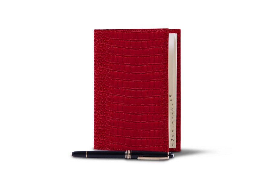 Office telephone directory with flexible cover - Red - Crocodile style calfskin