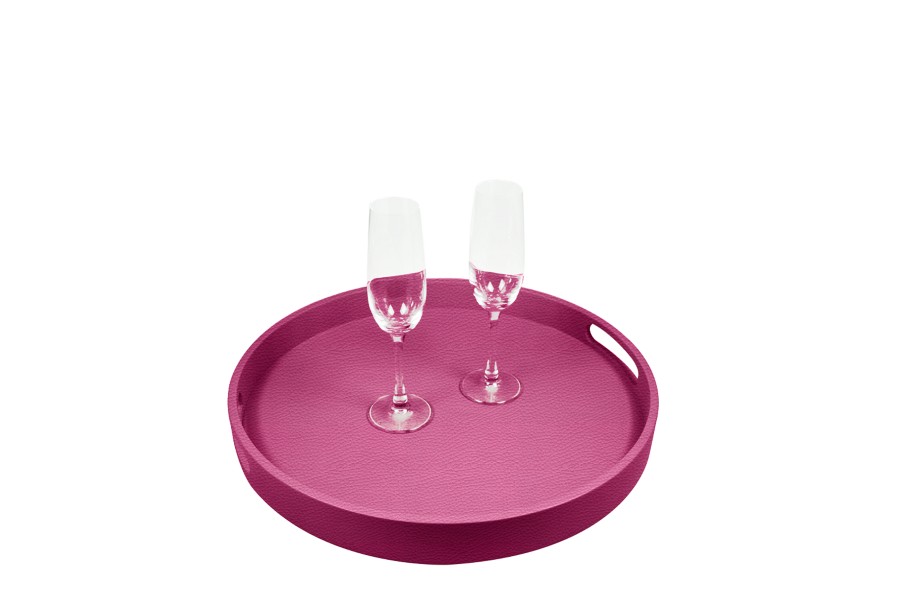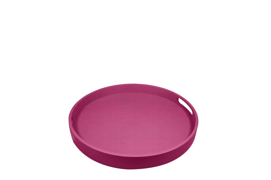 Round service tray - Fuchsia - Granulated Leather
