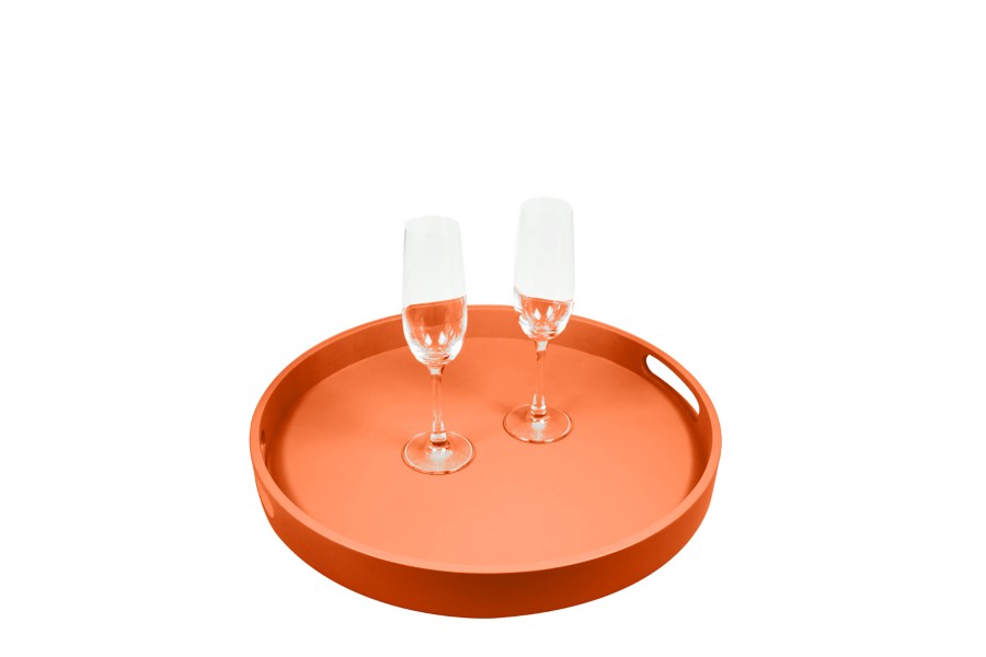 Round service tray - Orange - Smooth Leather