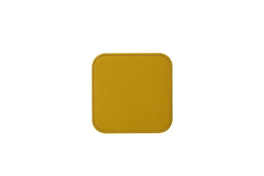 Set of 6 square coasters - Sun Yellow - Smooth Leather
