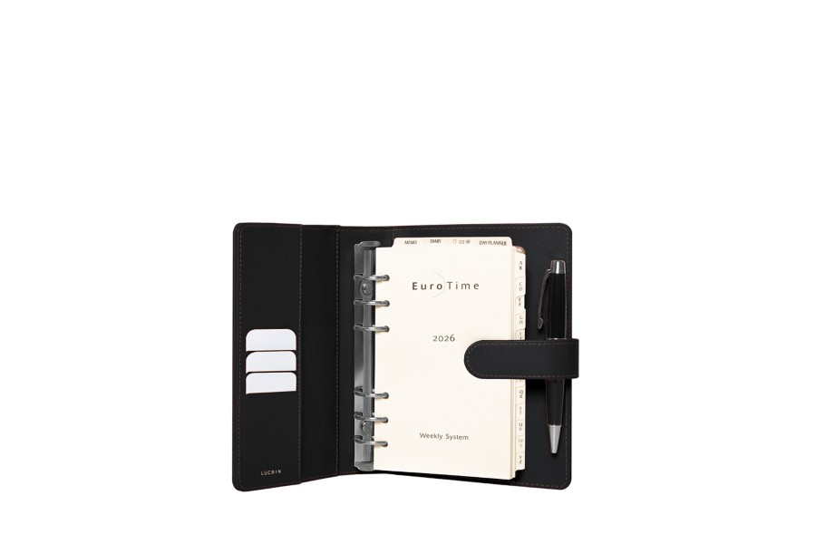 Medium 2019 agenda binder made of full grain leather with 6 nickeled rings. 3 interior pockets for credit cards. Delivered with 2019 calendar/agenda filler in 6 languages, 1 week on 2 pages / telephone index / memo.