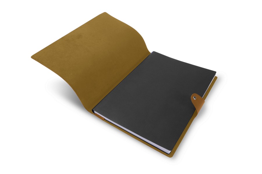 Many of us still love and use copybooks, and there is not many better than this wonderful A4 Rechargeable Notebook covered expertly by an authentic leather cover. Your ideas, notes and writings will have a safe and elegant home in this beautiful leather notebook that consists of 100 A4-format ivory-coloured lined sheets. The A4 notebook cover is equipped with a flap closure secured with a snap button. This A4 copybook can be made more personal and classy with the engraving of your name of initials.