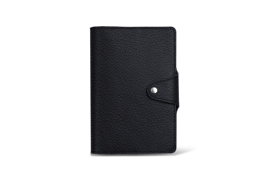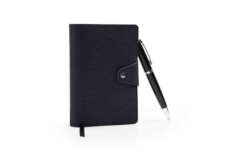 Here is the ideal leather pocket notebook, made in authentic leather. Whatever be the purpose, this A6 format notebook is handy and really practical. You can easily jot down phone numbers, confidential info, recipes and basically whatever you want. The A6 leather notebook has a sumptuous leather cover that closes thanks to a snap button flap. Subtle yet elegant, this pocket leather diary is available in a wide range of leathers and colours and can be refilled. Delivered with a A6 notebook of 100 ivory-coloured lined sheets, the leather notebook cover is perfectly customisable.