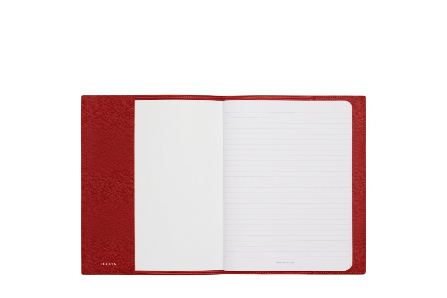 Made in authentic premium leather, this protective cover for A5-format notebook (of around 50 pages) is a beautifying and durable product. Beautifying, as it will turn your simple copybook into something much more classy. Durable, as it is conceived expertly by the finest leather craft artisans of Lucrin. The copybook is well held in place by two leather bands on each side in which you can slide in the hard cover of your notebook.