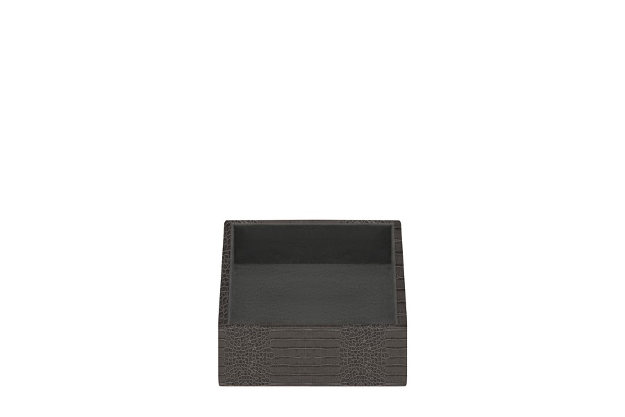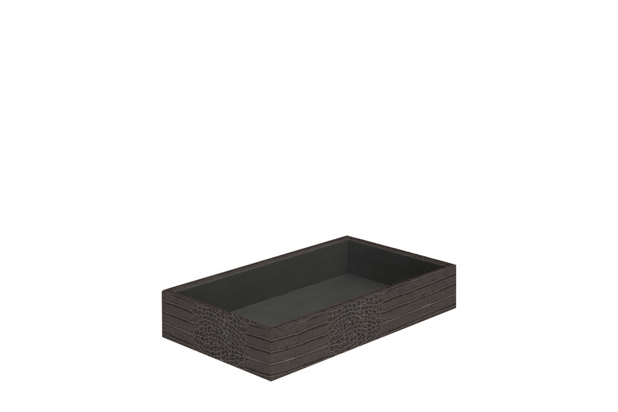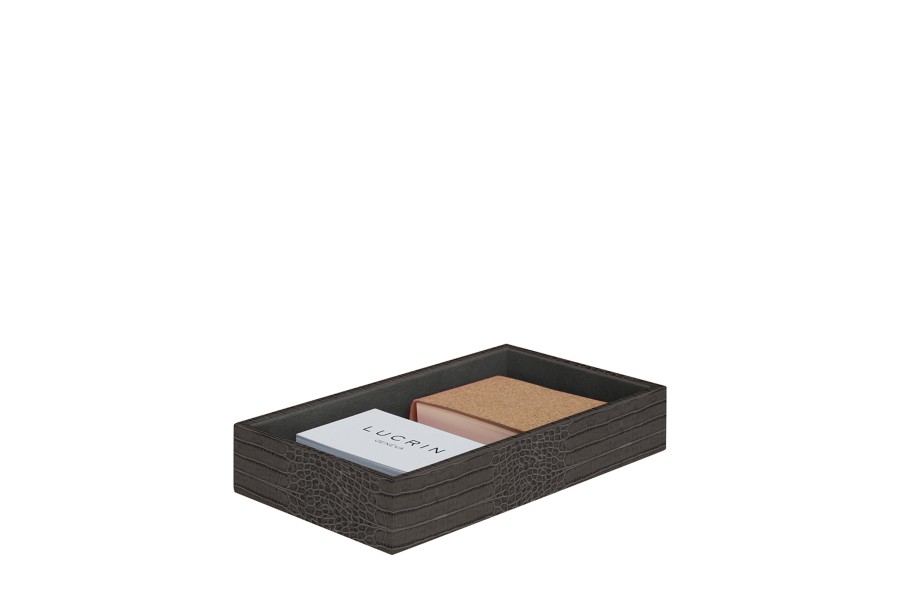 Storage Box (11 x 20 x 3.5 cm) - Mouse-Grey - Crocodile style calfskin