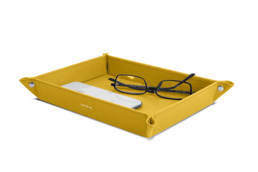 Large rectangular tidy tray (21.5 x 15.5 x 2.5 cm) - Sun Yellow - Smooth Leather