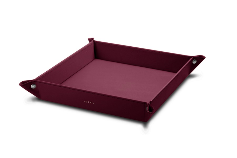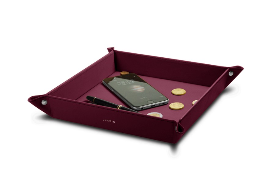Large square catchall (21 x 21 x 4 cm) - Burgundy - Smooth Leather