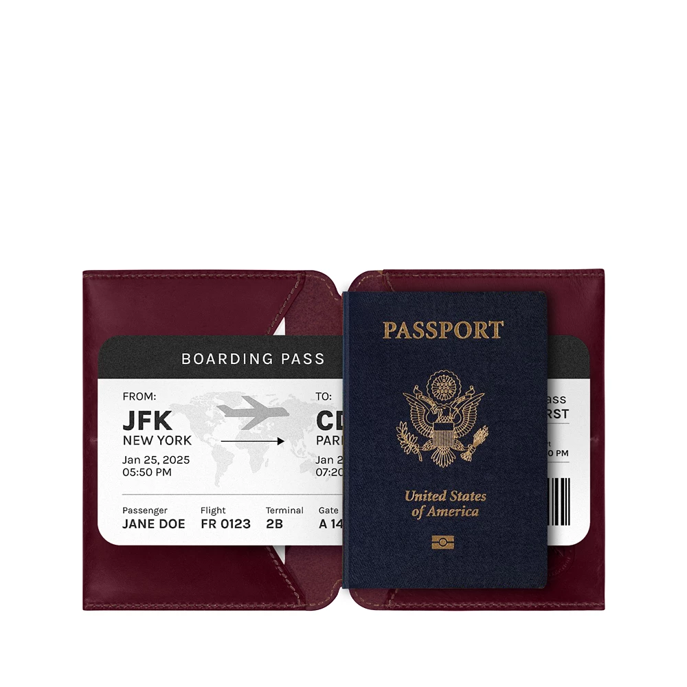 Passport Cover - Alpine Collection Burgundy  - Cow Hide Leather