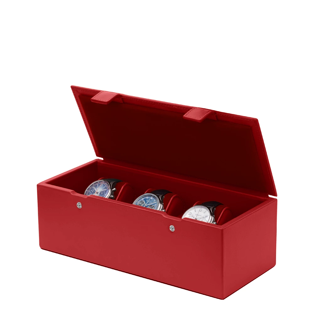 Watch Box for 3 Watches Red  - Smooth Leather